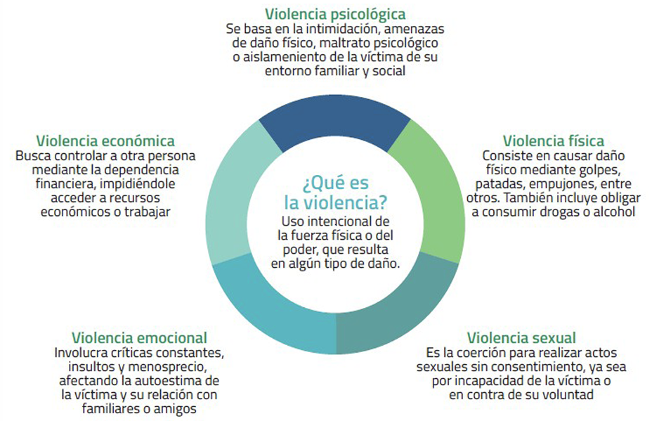 Lee el siguiente cuadro en el cual se tratan los diferentes tipos de violencia, y reflexiona sobre las situaciones que hayas experimentado o ejercido en tu vida.